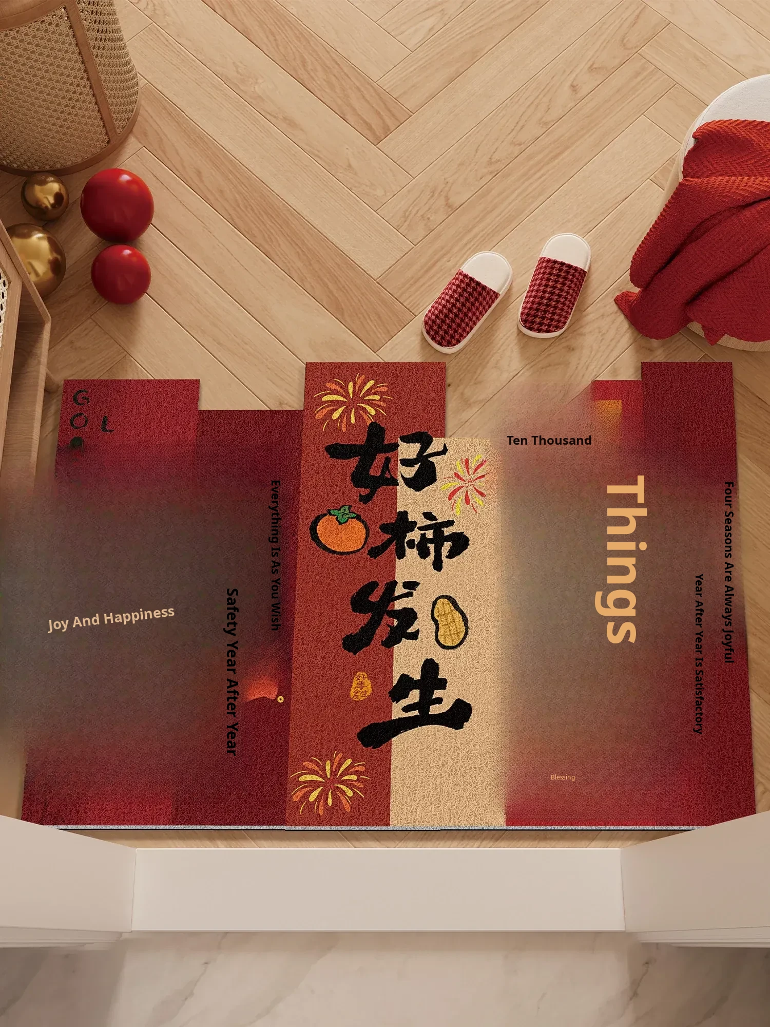 New Year Welcome Mat - Festive Red Entrance Rug for Home, Non-Slip, Dirt-Resistant, No Wash Required, Perfect for Housewarming Celebrations!