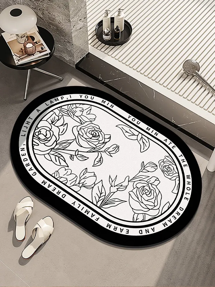 バスルーム用吸水マット|滑り止め効果抜群のシリカゲル製|トイレや洗面所に最適な防水マット|快適な足元を実現するおしゃれなデザイン!