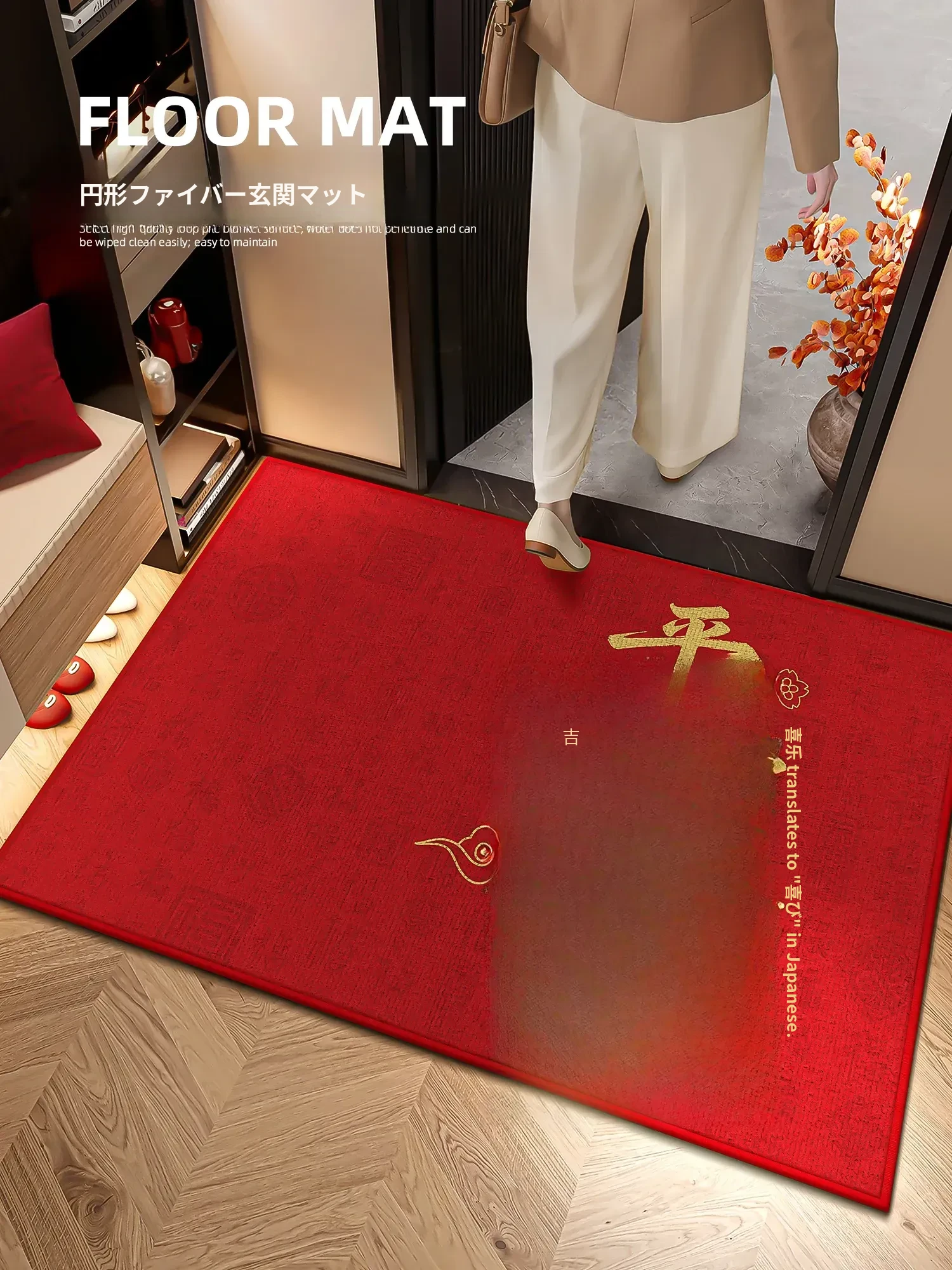 2026年新作!新年を迎えるための華やかな赤い玄関マット!滑り止め付きで、引越しや新居祝いにも最適。家族や友人を温かく迎える、喜びあふれるアイテムです!