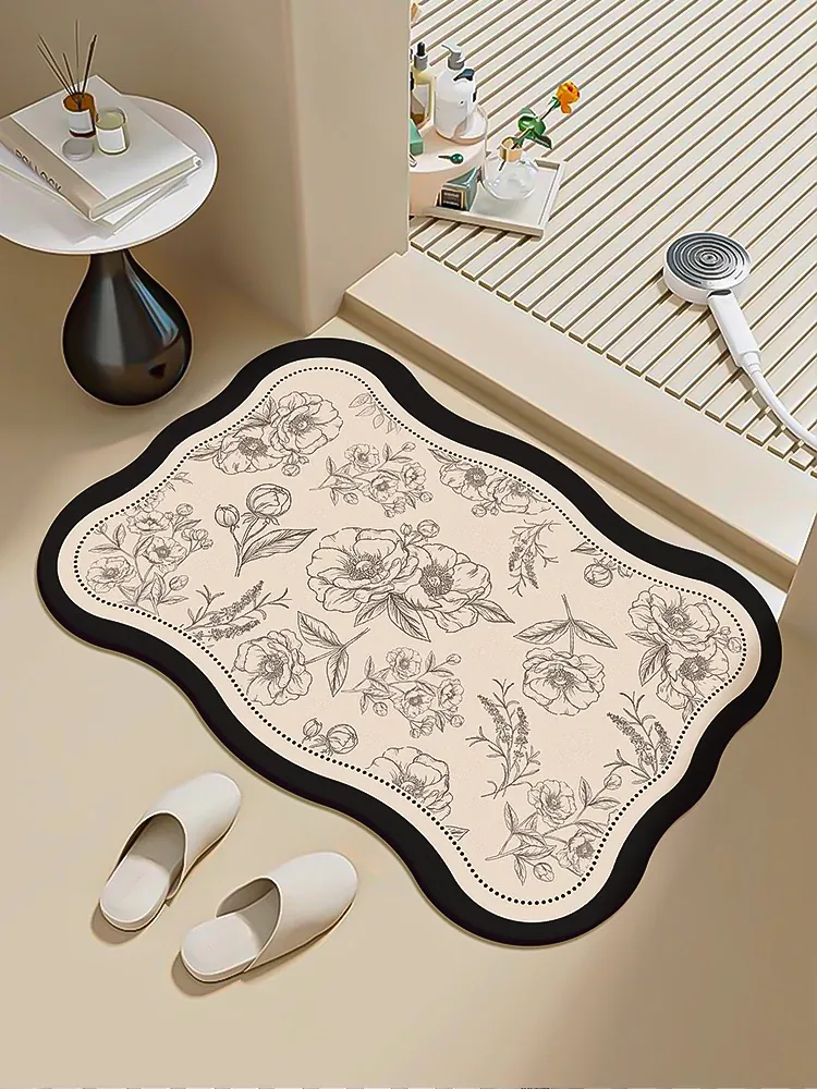 防滑バスルームマット - トイレや洗面所に最適!吸水性抜群のシリカゲルマットで、快適な足元を実現!おしゃれで機能的なデザインが、あなたのバスルームを一新します。