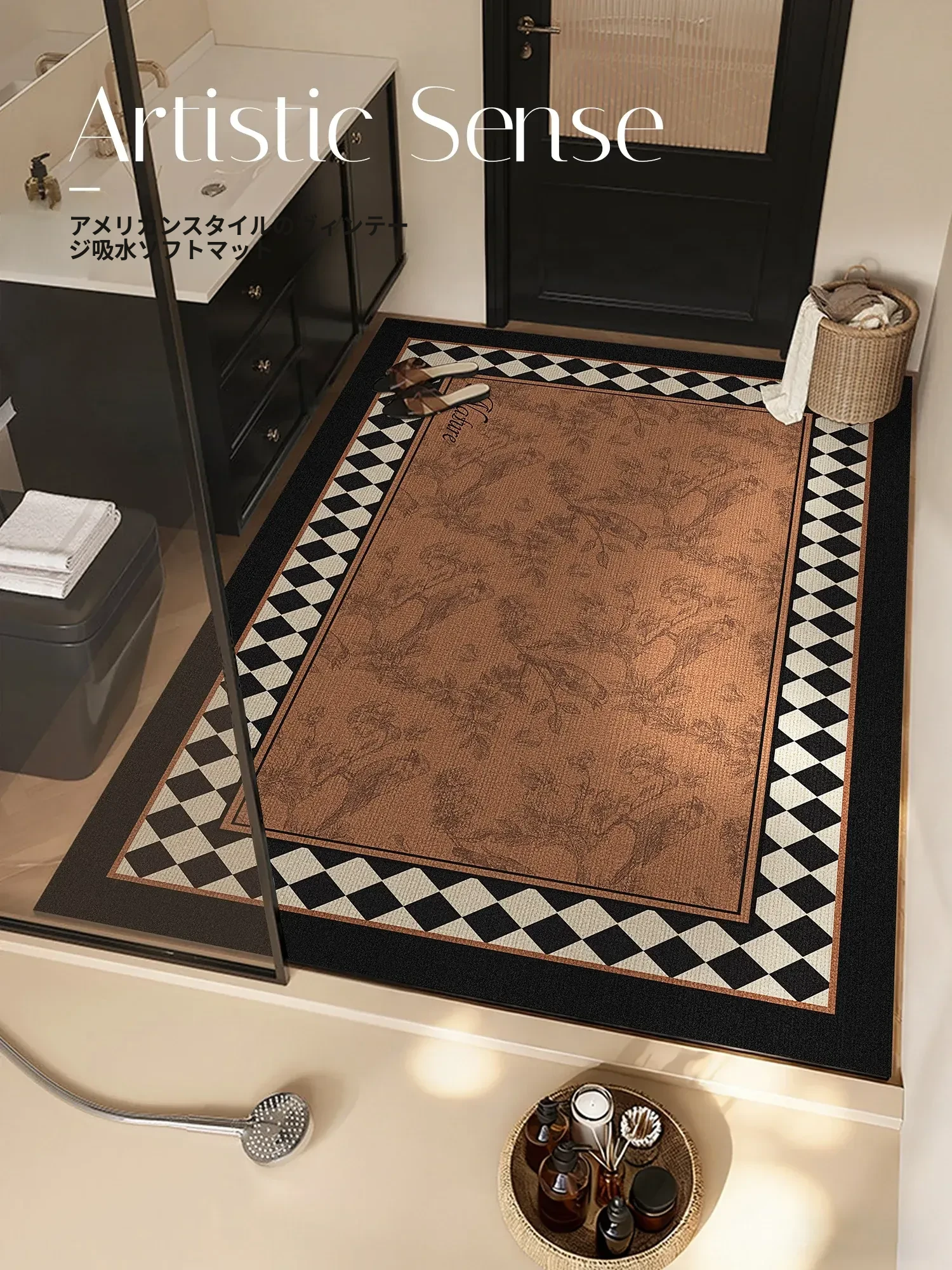レトロアメリカンスタイルのバスルームマット|大サイズ・吸水性抜群・滑り止め付き|湿気と乾燥を分ける!シリカゲル厚手マットで快適なトイレ環境を実現!