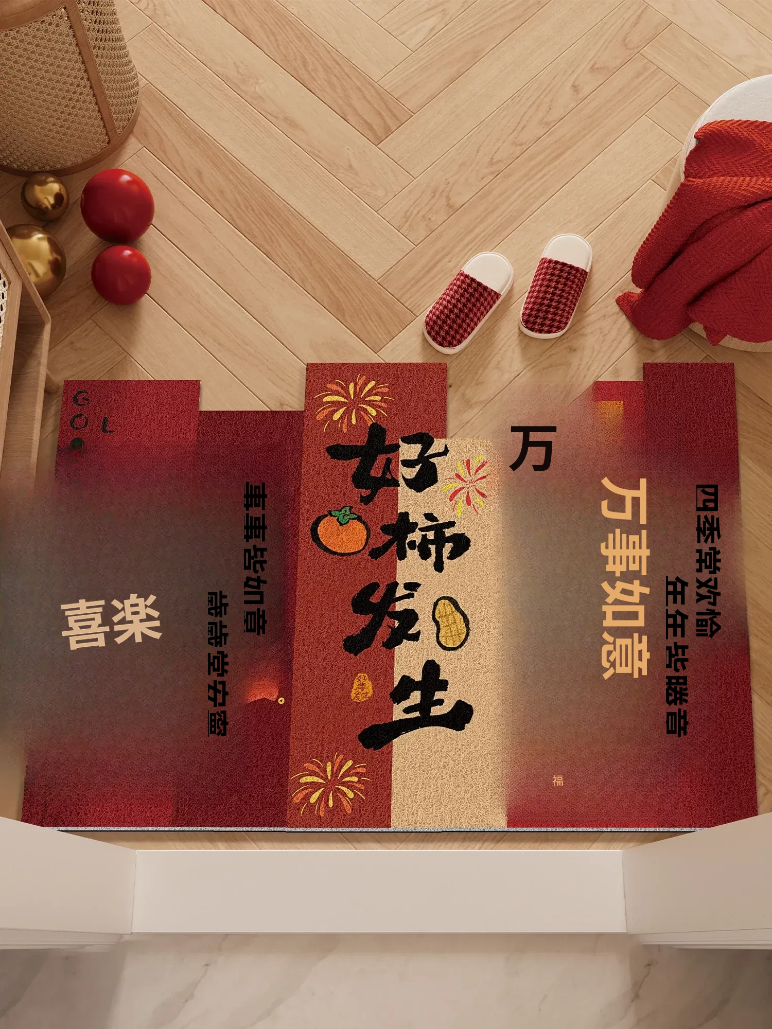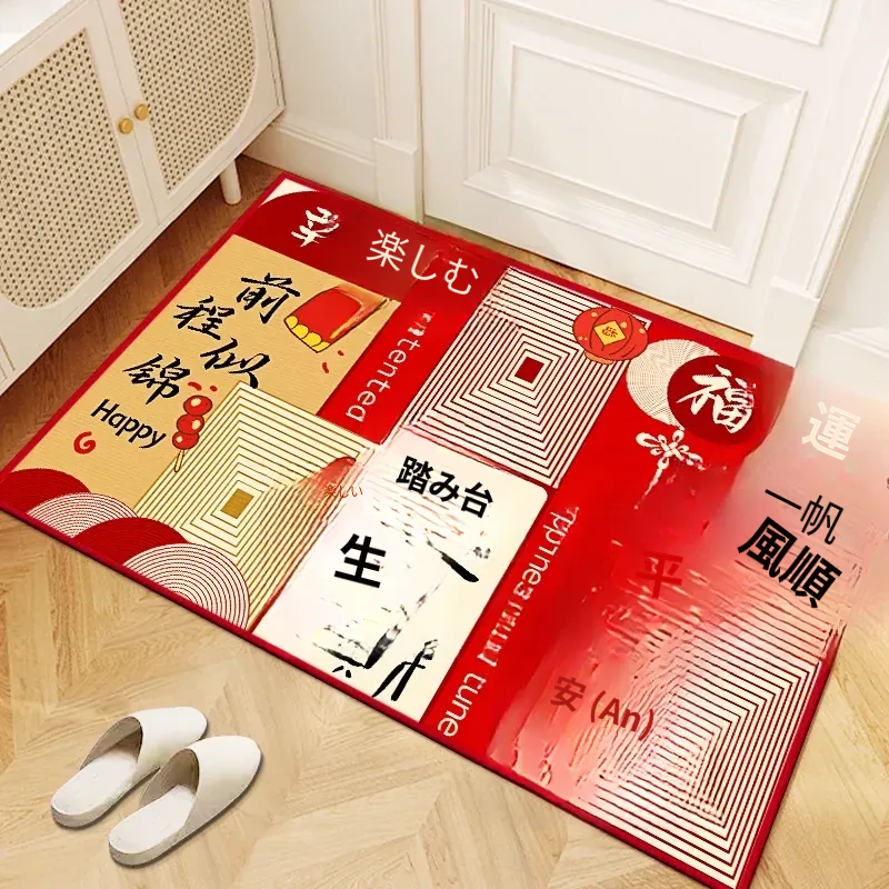 新年祝い!赤い門口マット - 安全な出入りをサポートする、引っ越し祝いにぴったりなシルクサークルデザインのドアマット。快適な玄関を演出し、新年を迎えましょう!