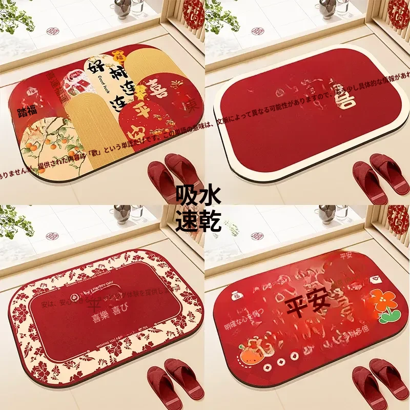 結婚祝いにぴったり!浴室用シリカゲル吸水防滑マット - 新年の喜びを演出するトイレドアマット、婚房を華やかに彩る足元マット!
