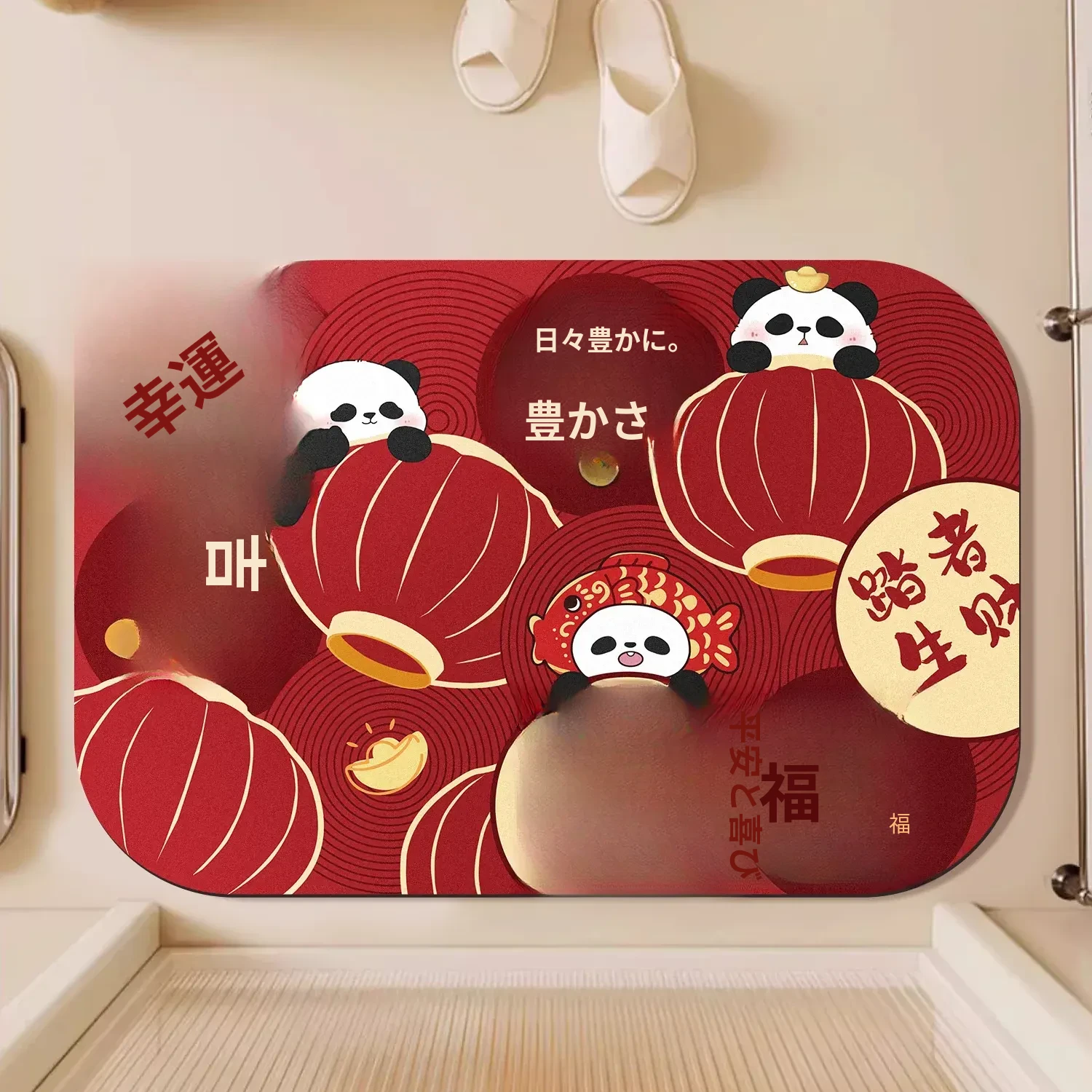 新年にぴったり!赤いお祝いのバスルームマット - 吸水性抜群の硅藻土製、滑り止め機能付き。家庭用としても最適な衛生的なバスカーペットで、快適な入浴タイムを楽しもう!