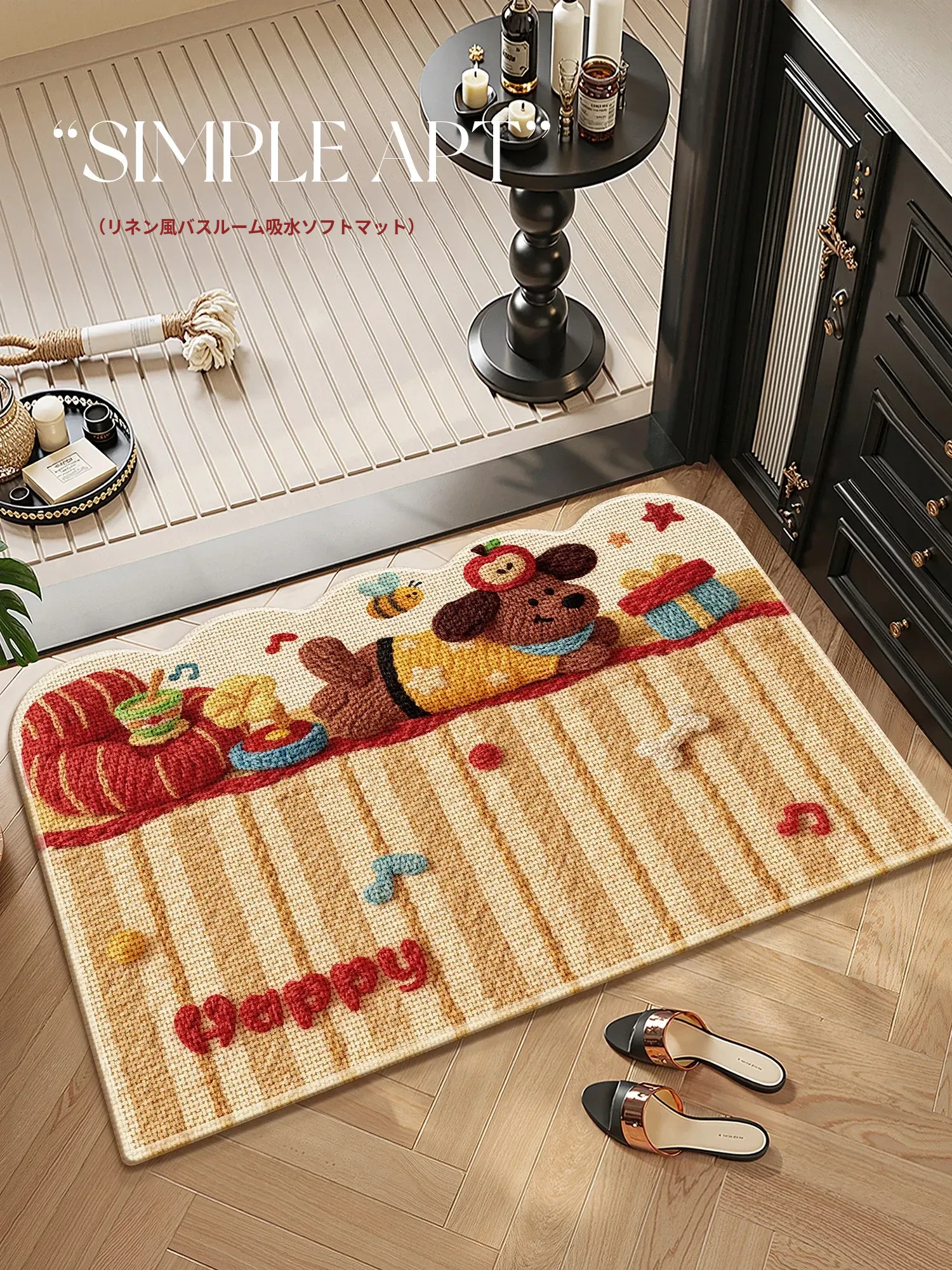 カラフルなカートゥーンデザインの吸水バスマット - 厚手で滑り止め機能付き、トイレの入り口にぴったりなリネン風の織り模様!快適さと安全性を両立したおしゃれなバスマットで、毎日のバスタイムをもっと楽しく!