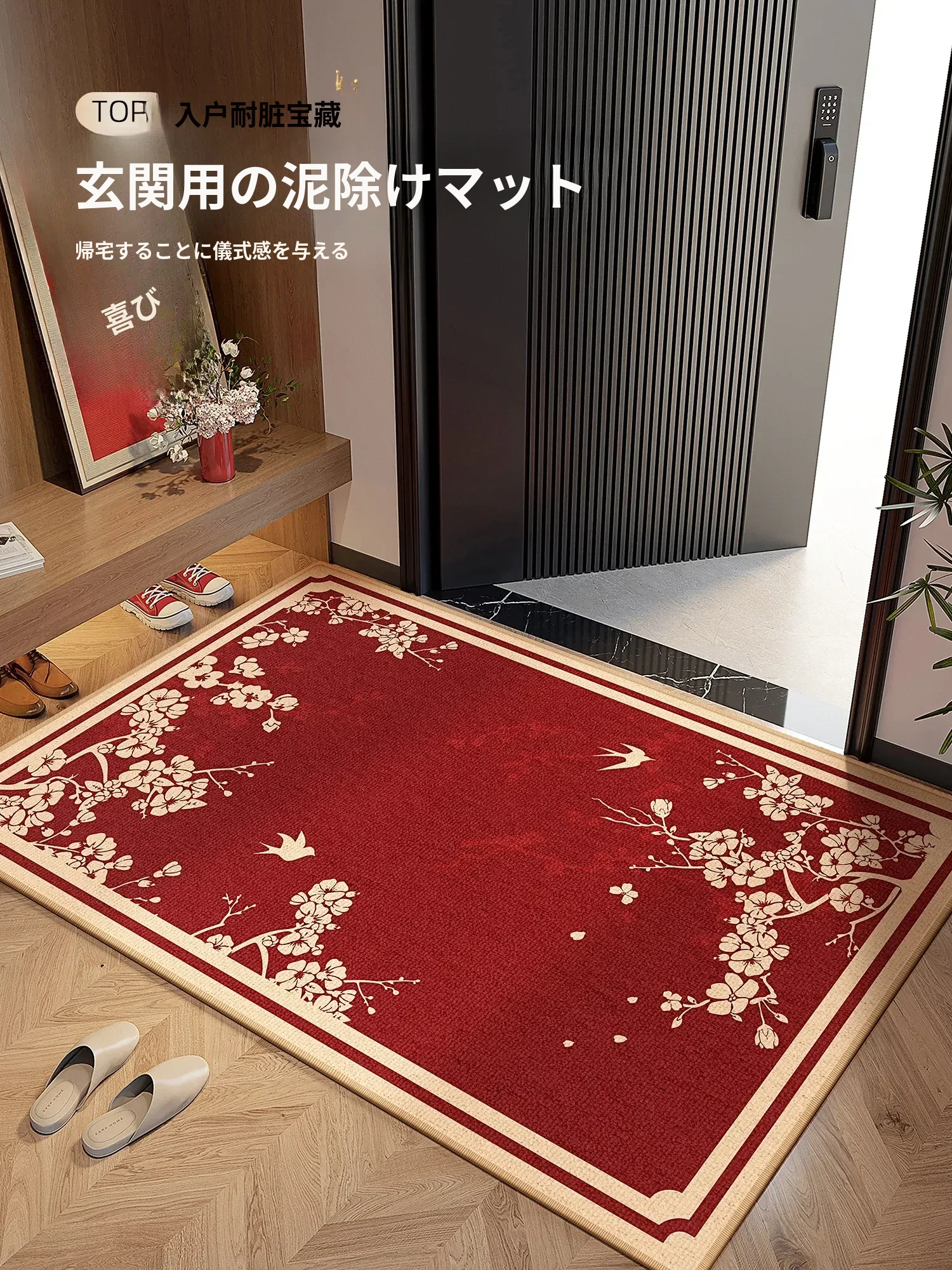 2026年新作!華やかな赤の新中式玄関マット - お正月にぴったりの喜びを呼ぶデザイン!耐汚れ&お手入れ簡単、玄関を華やかに彩るフロアマット。あなたの家に福を呼び込む一品!