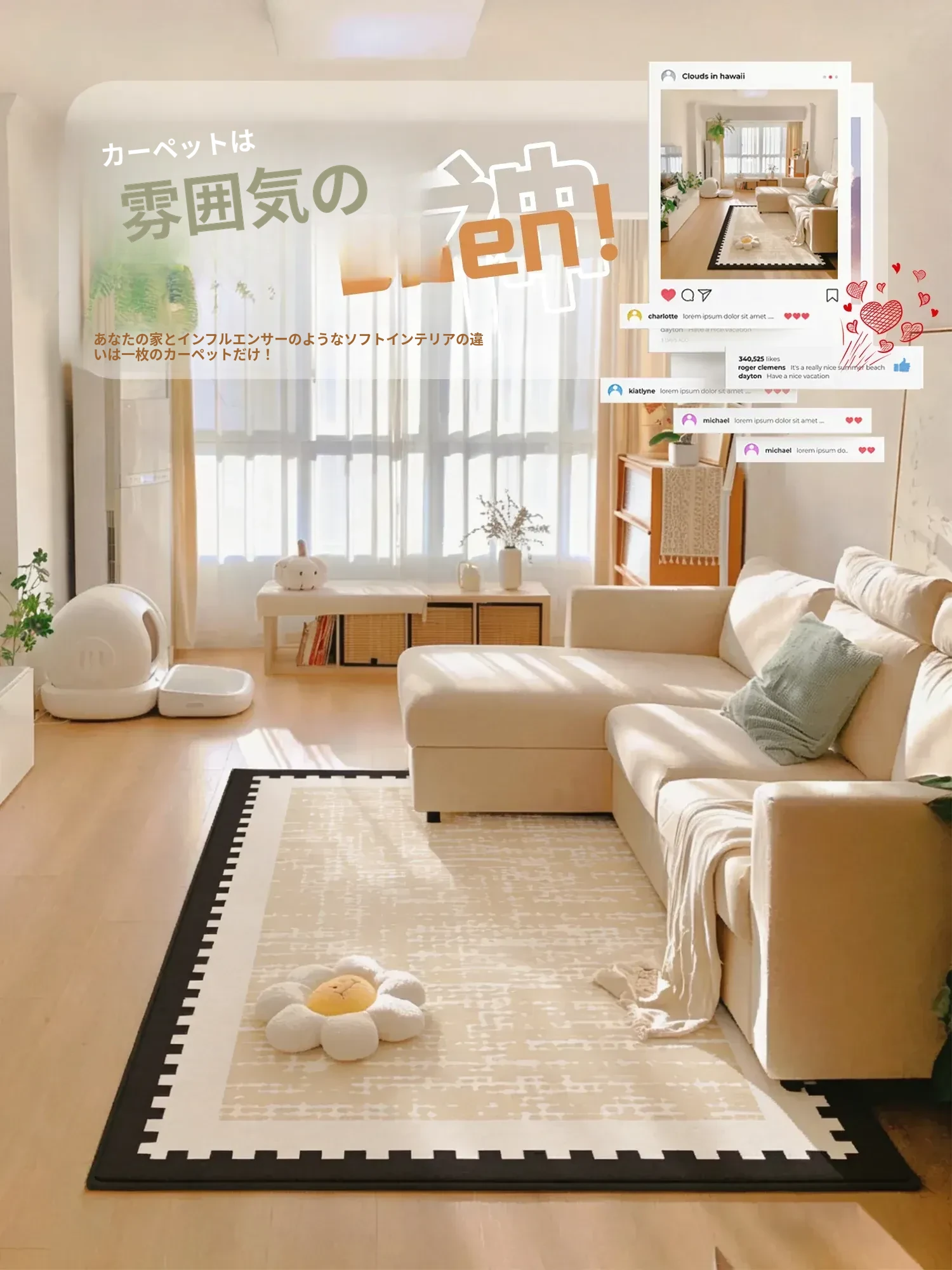 2026年新作!高級感漂浮するふわふわクリーム色のリビングカーペット - 防水、汚れもサッと拭ける、居心地抜群の寝室用フロアマット!ソファと相性抜群、家庭にぴったりのアイテムです。