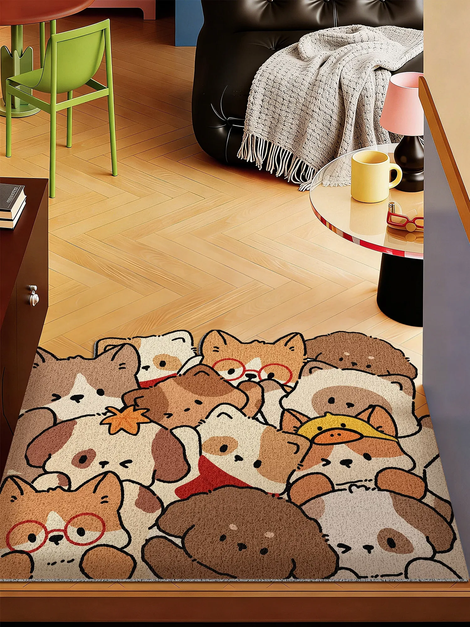 新作!小型犬用カスタマイズ可能なPVC玄関マット - 滑り止め付き、土汚れを防ぐふわふわフロアマット!おしゃれなデザインで、あなたの家にぴったりのサイズにカットできます。