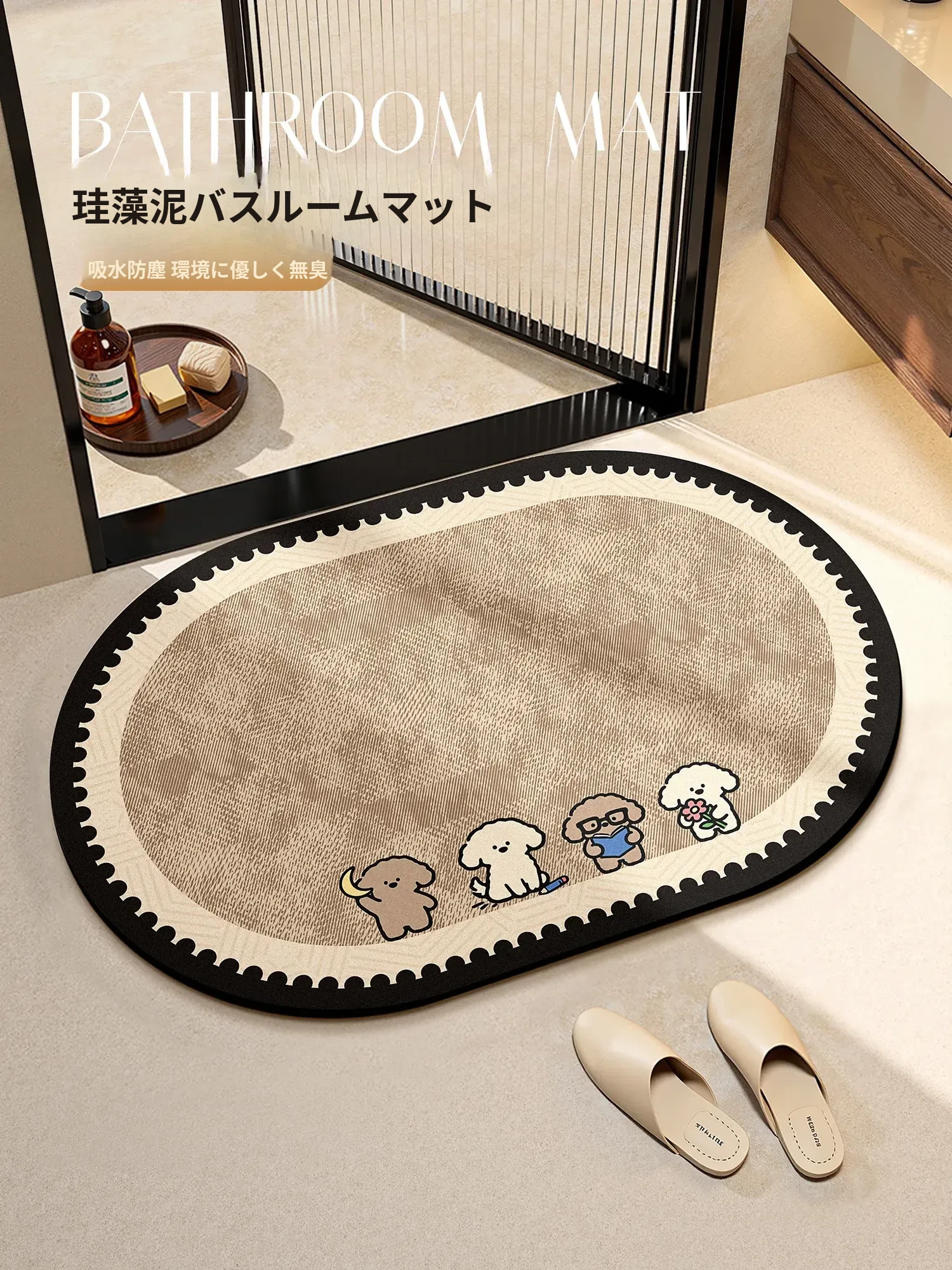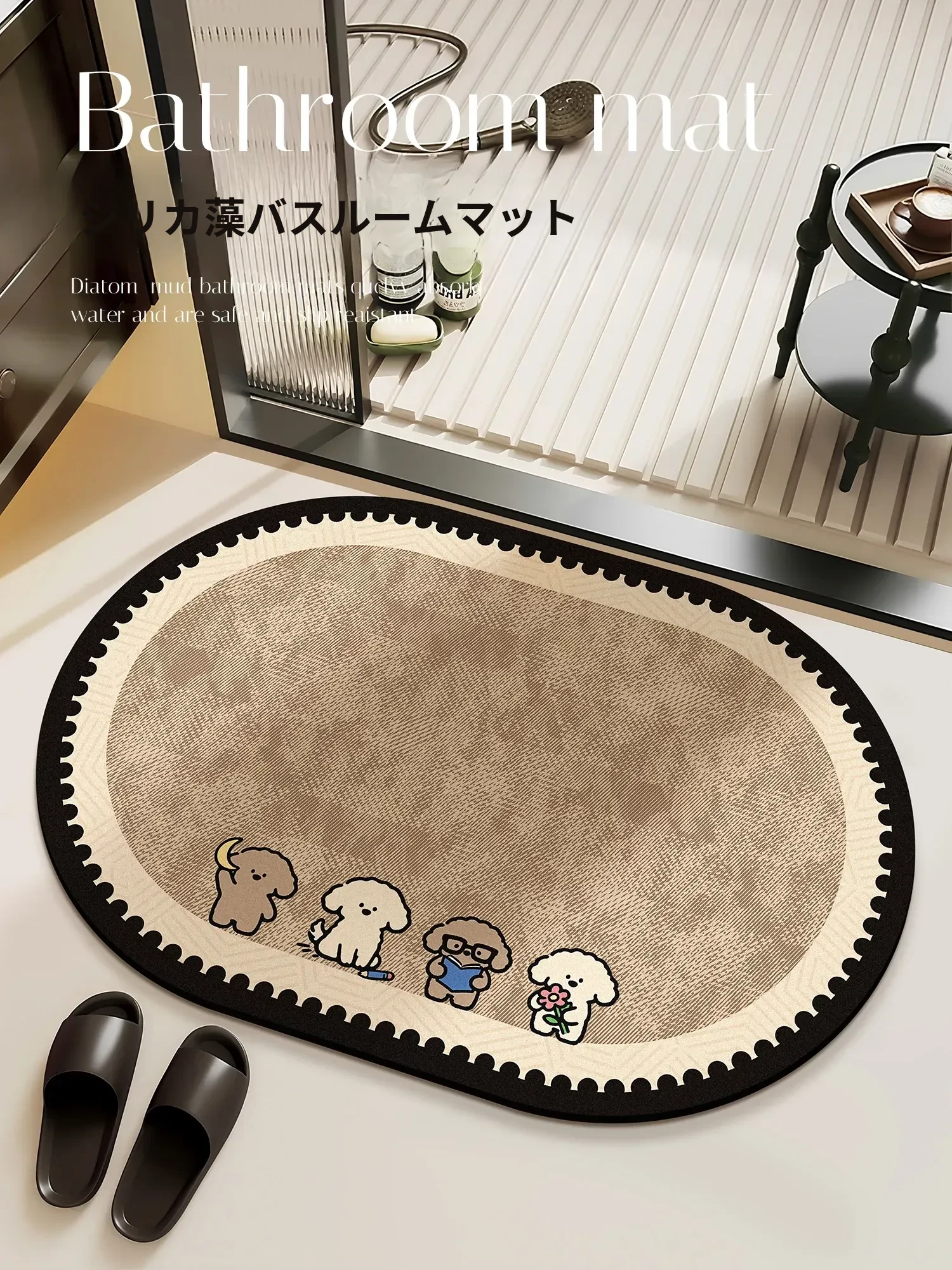バスルームマット&玄関マット - 吸水性抜群の珪藻土素材で滑り止め効果もあり!トイレや洗面所にぴったりな家庭用ラグ。清潔感あふれるデザインで、毎日の生活を快適に演出します。