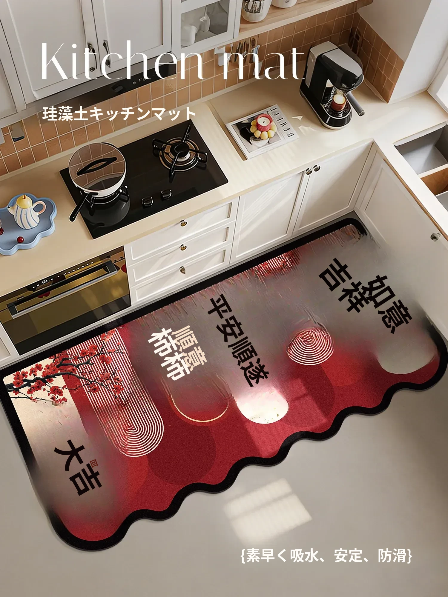 キッチン専用滑り止め吸油マット - 拭き掃除不要のシリカ土製!大面積カバーで水分をしっかり吸収、家庭に最適なフロアカーペット!