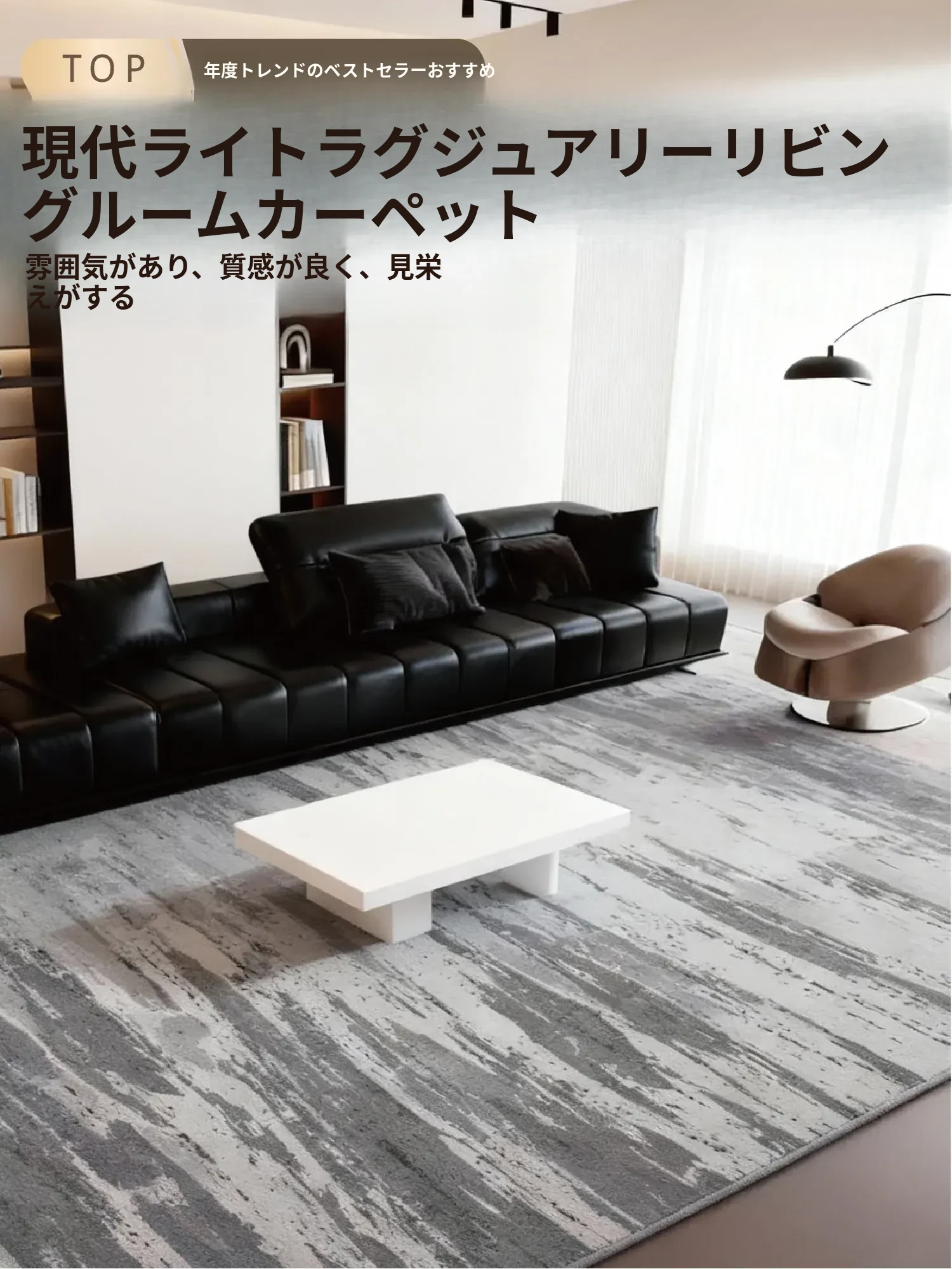 2026年新作!高級感あふれるグレーの防水・防汚ラグ、リビングやベッドサイドに最適な極簡シンプルデザイン。快適でスタイリッシュな空間を演出します!