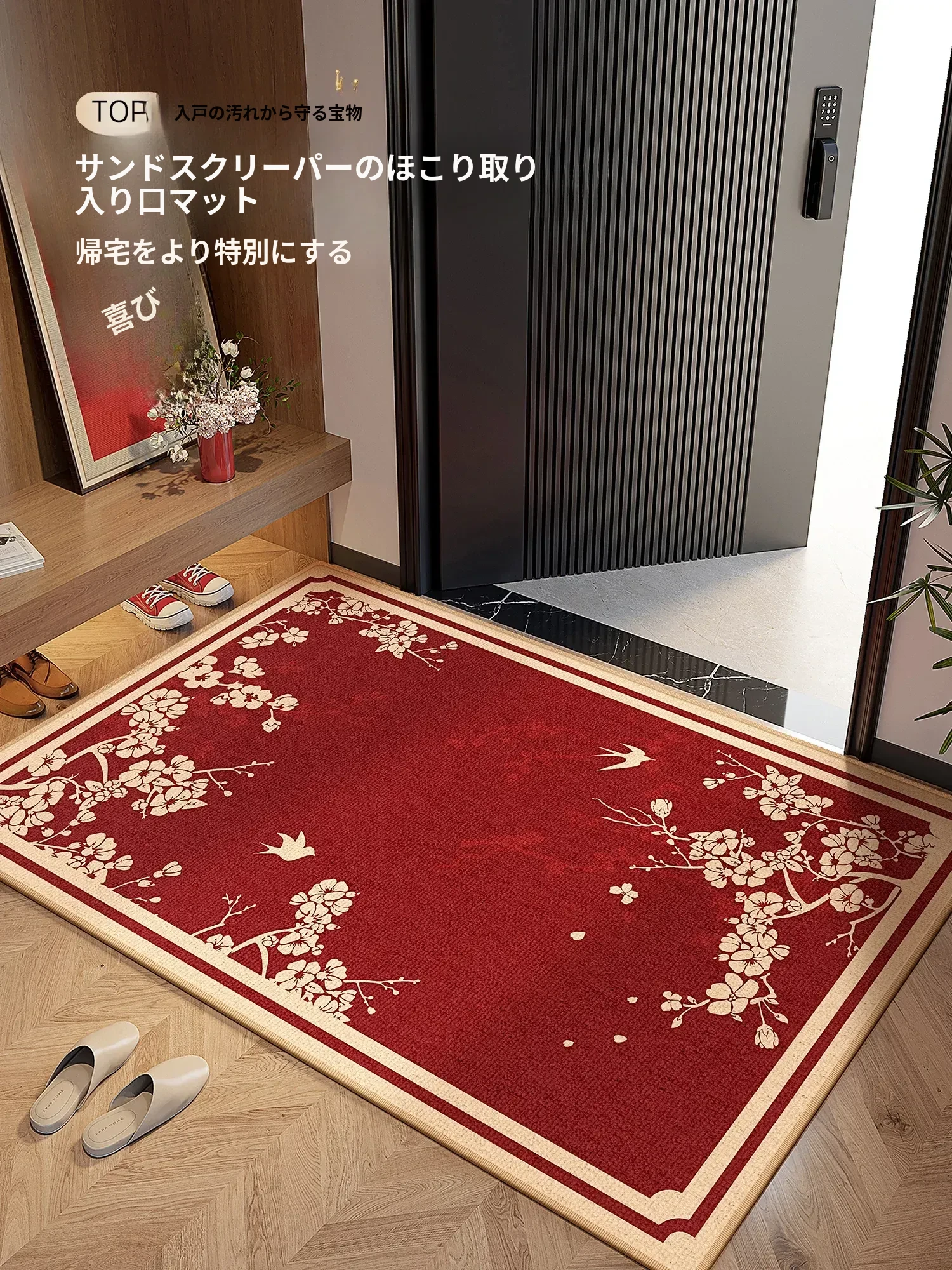 2026年新作!高級感あふれる中華風の赤い玄関マット - お洒落で清潔感抜群!耐汚れ&滑り止め機能付き、玄関を華やかに彩ります。お客様を温かく迎える、上質なデザインの入り口マット!