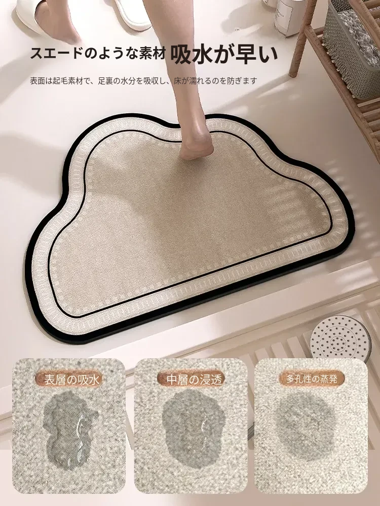 バスルームマット・トイレ用ソフトシリカゲルマット - 吸水・滑り止め機能付き!洗面所の速乾カーペットで、清潔さと安全を両立。快適な足元を実現します!