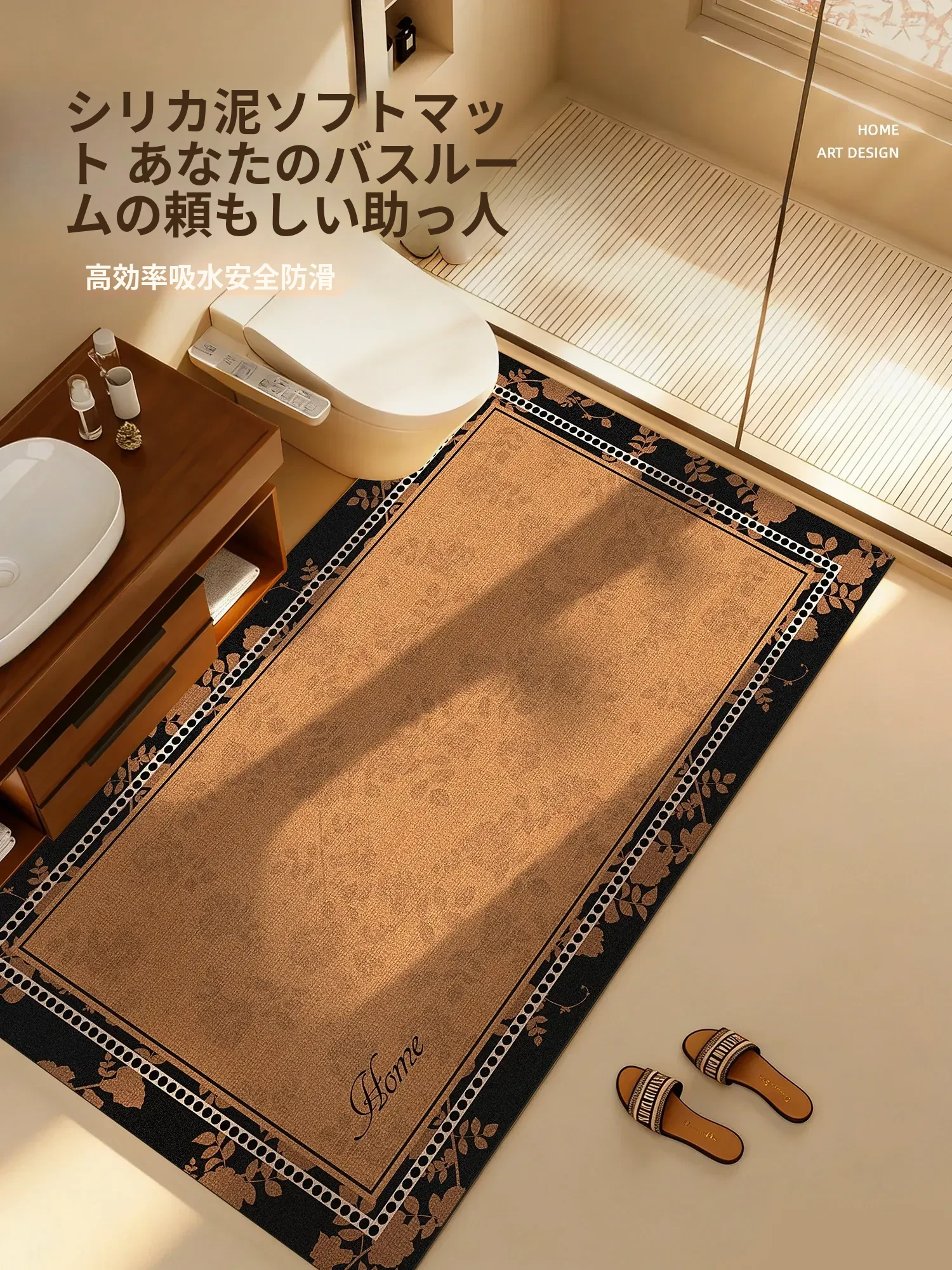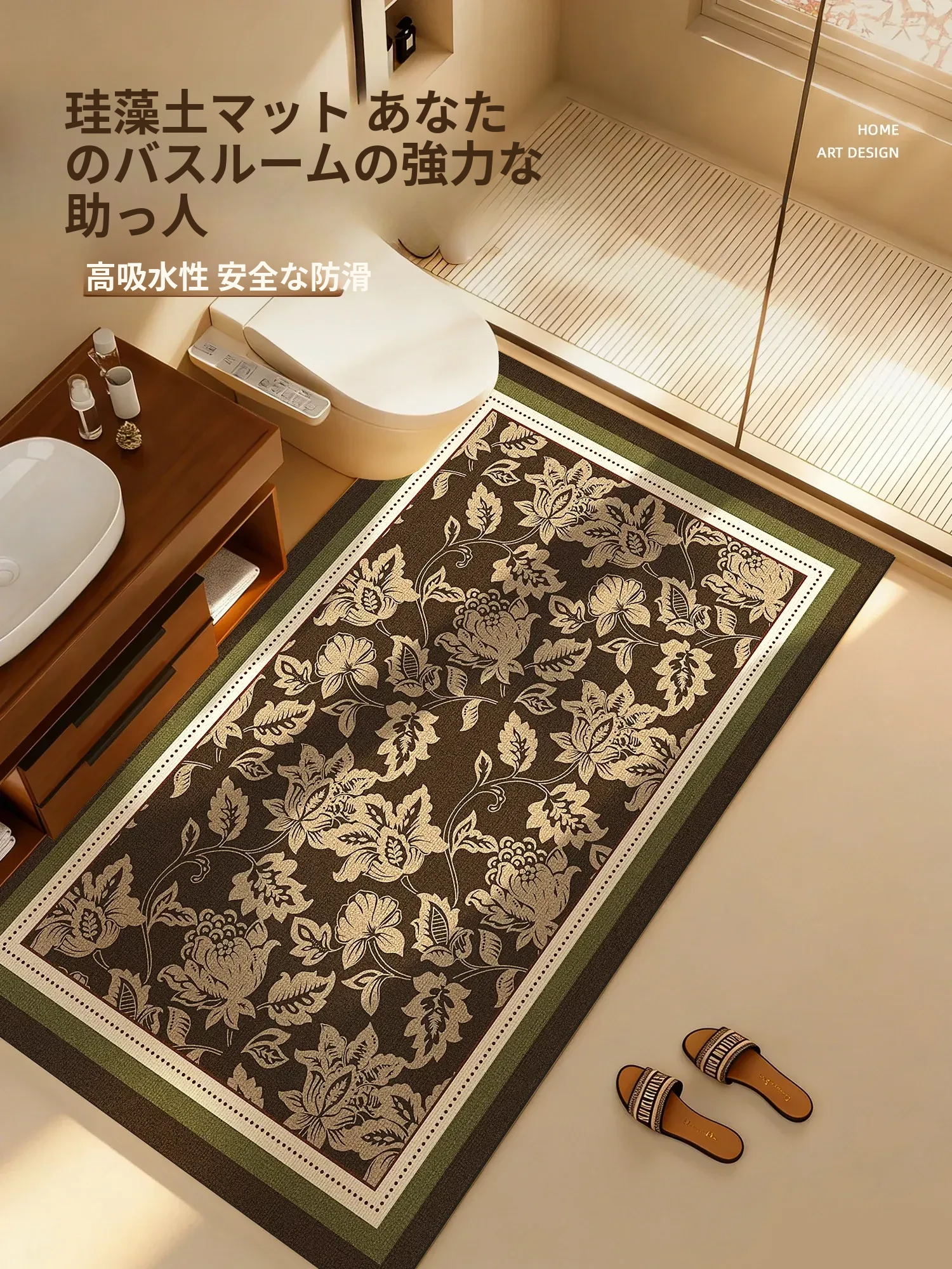 古風のバスルームマット 厚手で吸水性抜群!滑り止め付きで安全な洗面所・トイレ用マット、快適な入浴タイムをサポートします。