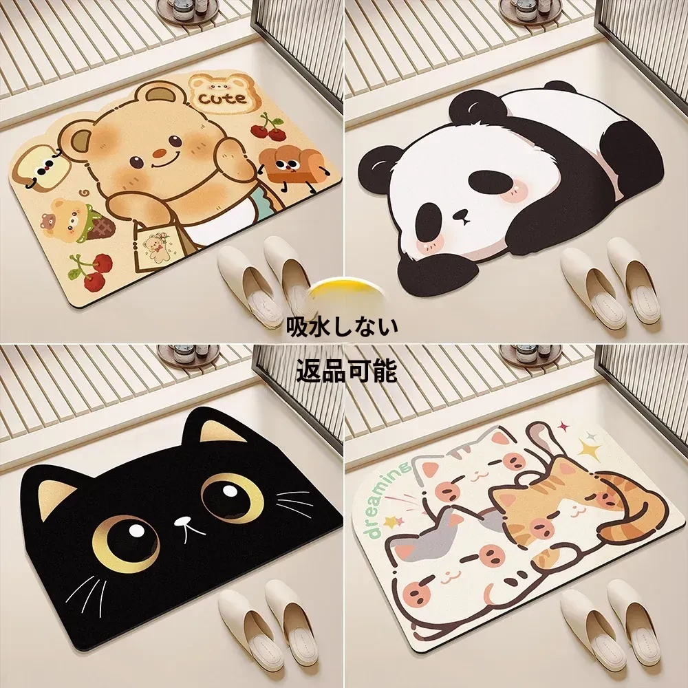可愛い厚手の浴室マット - 吸水速乾、滑り止め、耐汚れ、トイレに最適!シリカゲルで快適さを実現。おしゃれなデザインでバスルームを華やかに!