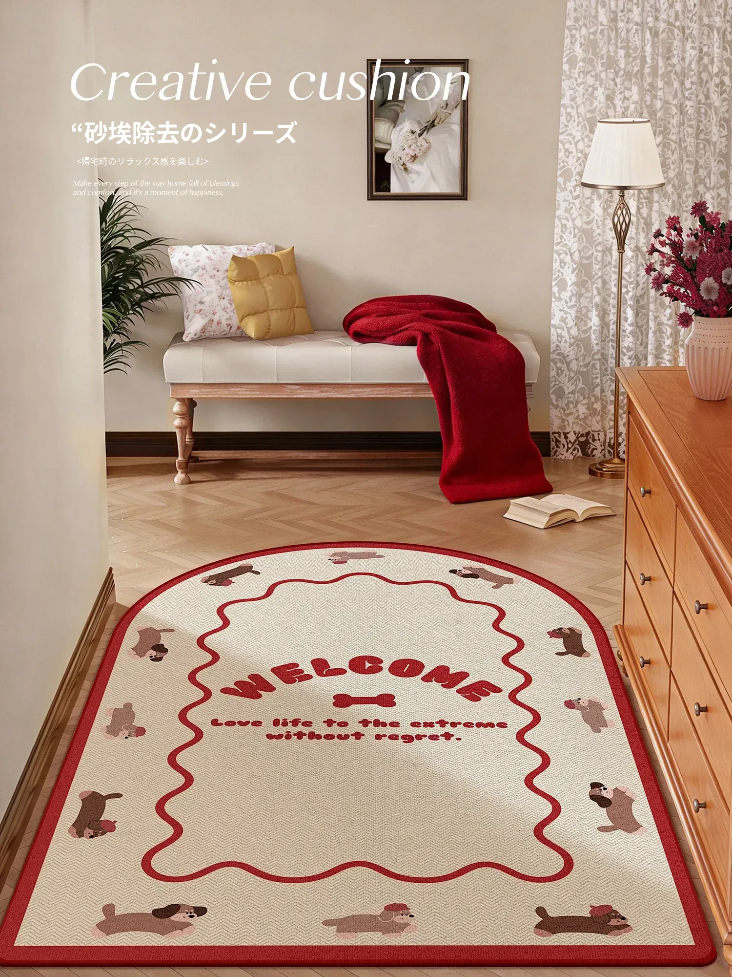 2026年新款入戸玄関マット|おしゃれな赤色の室内用カーペット|新居祝いにぴったり!家の入り口を華やかに飾る喜びの一品!