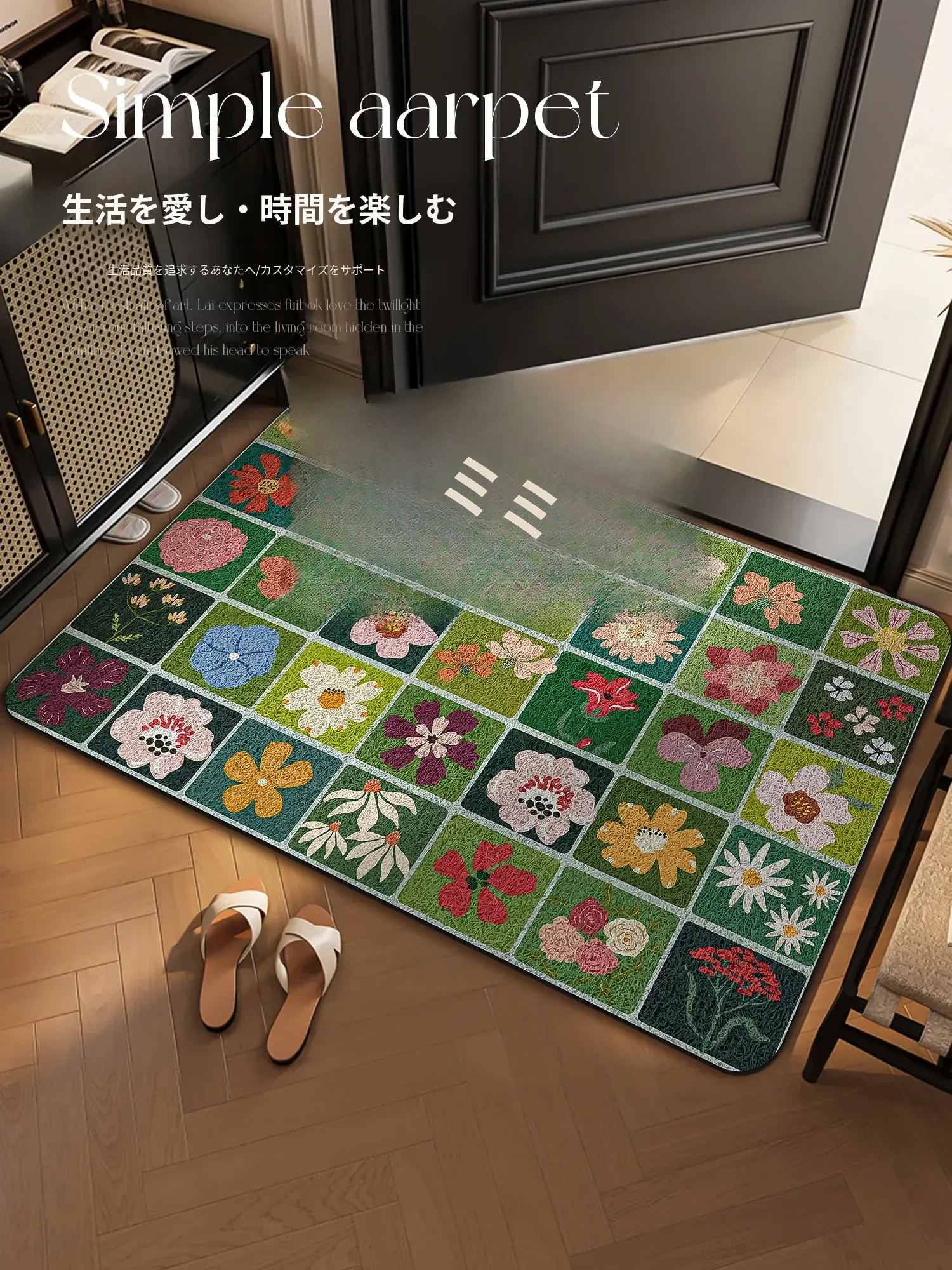 安心の出入りをサポート!おしゃれな玄関マット - 新居祝いにもぴったりな華やかデザインで、訪れる人を温かく迎えます。大きなサイズで使いやすく、玄関を彩る素敵なアイテムです。